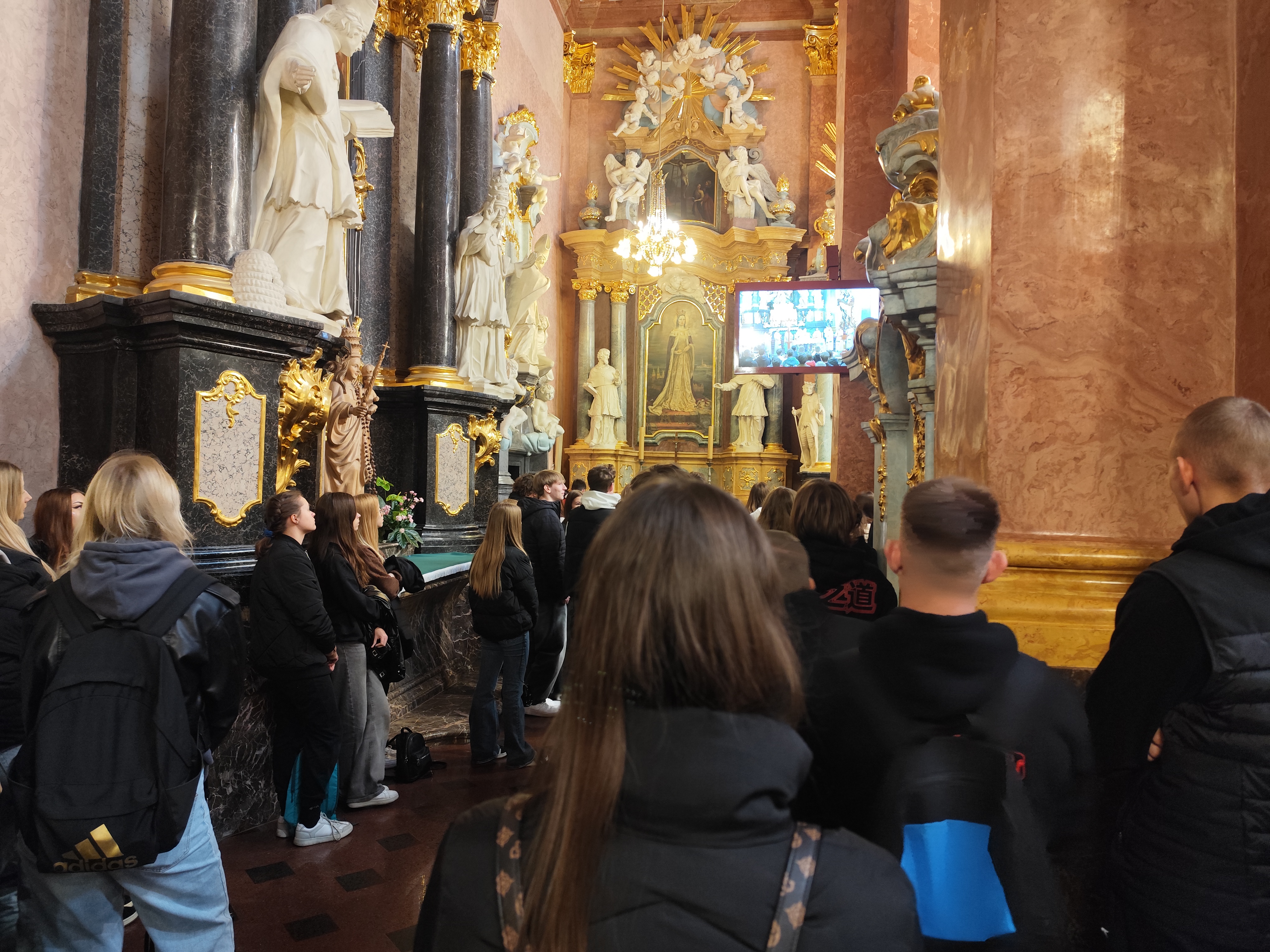 W dniu 16 października 2025 roku, tegoroczni maturzyści z Zespołu Szkół w Piotrkowicach Małych pojechali - jak co roku - do Częstochowy na Pielgrzymkę Maturzystów z Diecezji Kieleckiej. Naszą szkołę reprezentowało łącznie 13 osób z klasy 5b i 5c, którzy uczestniczyli w sprawowanej w katedrze Mszy Św. oraz Drodze Krzyżowej. Na zakończenie, blisko półtorej tysiąca obecnej tam młodzieży zawierzyło też swoją przyszłość Matce Bożej. Powodzenia na maturze.