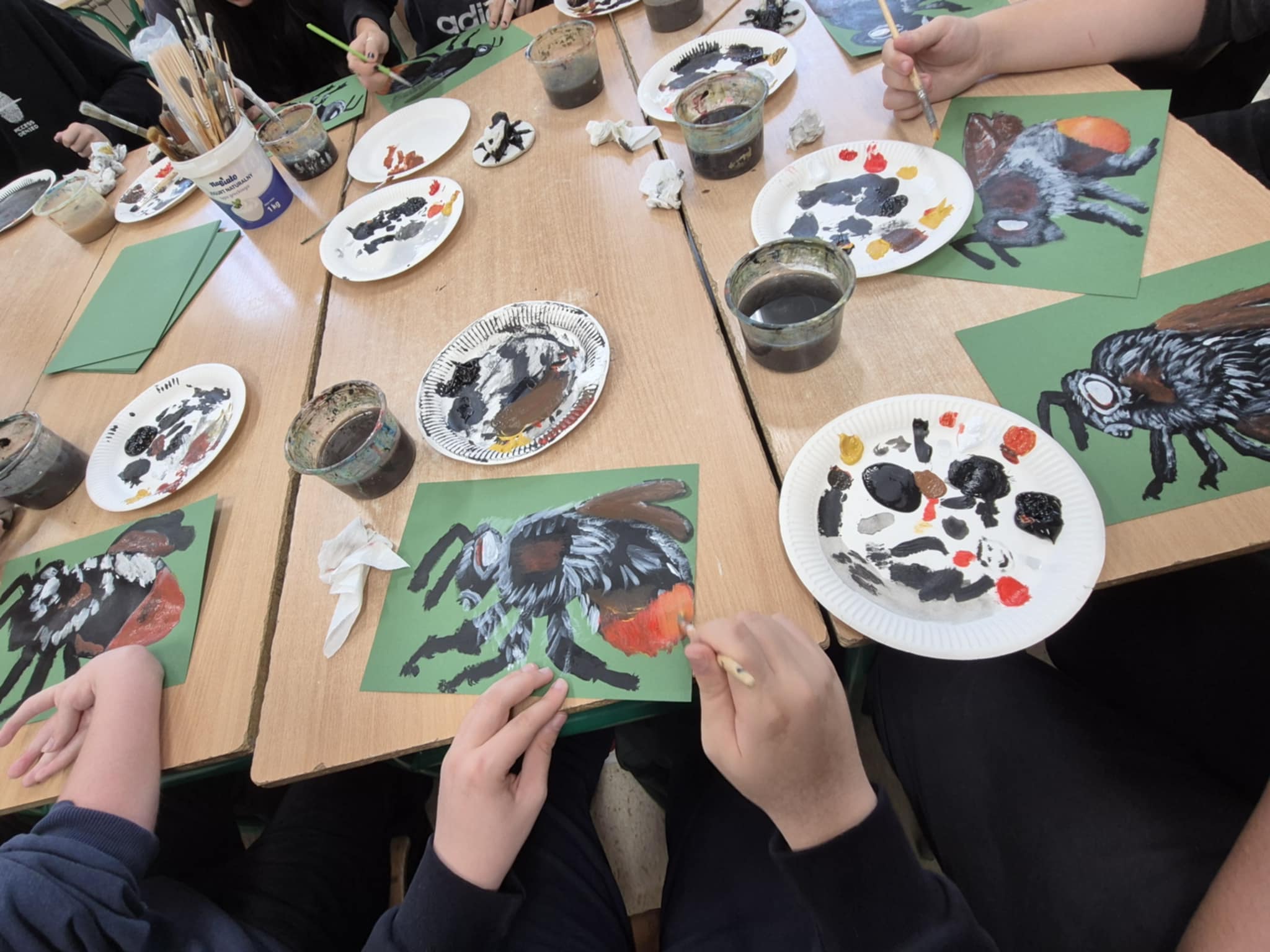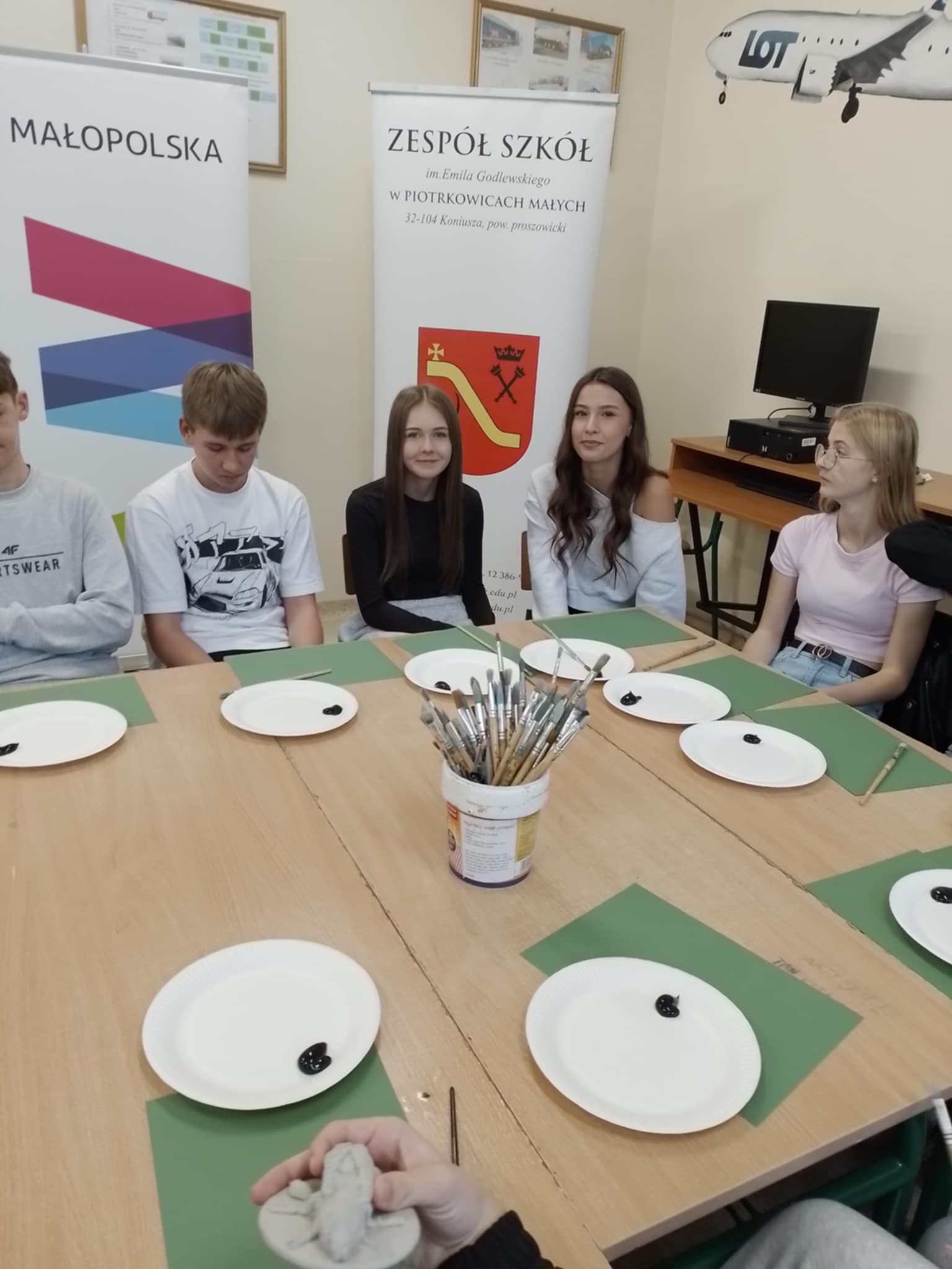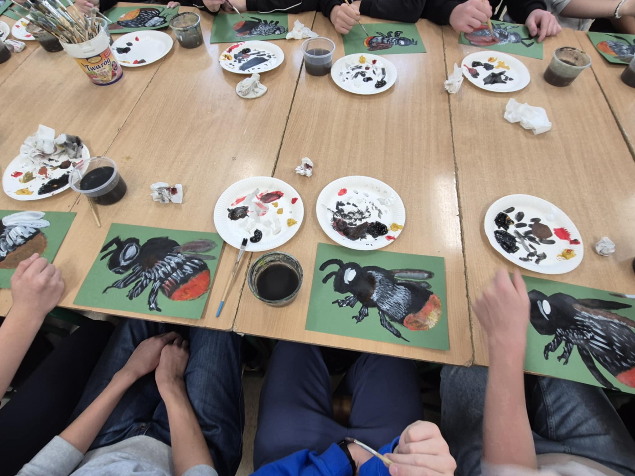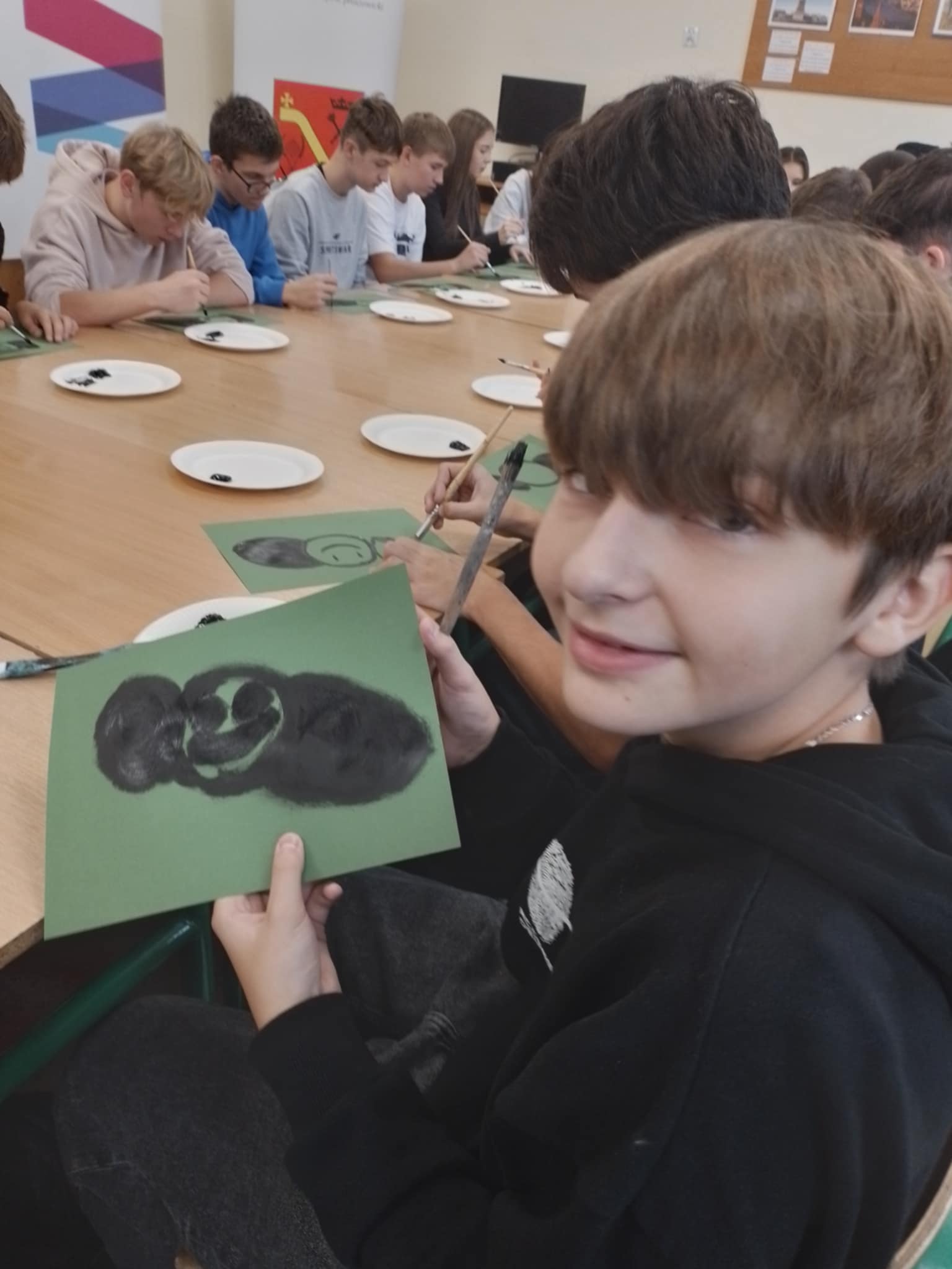 22 października 2025 roku w Zespole Szkół w Piotrkowicach Małych odbyły się warsztaty i prelekcja zorganizowane przez Stowarzyszenie Pszczelarzy Ziemi Proszowickiej. W zajęciach uczestniczyli uczniowie klasy 1C technikum logistycznego. Podczas spotkania młodzież miała okazję poszerzyć swoją wiedzę na temat roli zapylaczy w środowisku naturalnym, ich ogromnego znaczenia dla przyrody oraz potrzeby ochrony tych pożytecznych owadów. Uczestnicy poznali również przykłady dobrych praktyk, które każdy z nas może wdrażać, aby wspierać dzikie zapylacze. Pod kierunkiem pana Michała Molickiego uczniowie wzięli udział w części plastycznej warsztatów, podczas której malowali trzmiela, jednego z najważniejszych dzikich zapylaczy. Zajęcia przebiegały w miłej i twórczej atmosferze, a uczestnicy wykazali się dużym zaangażowaniem i kreatywnością. Serdecznie dziękujemy pani Małgorzacie Pokornik oraz panu Michałowi Molickiemu za zorganizowanie i przeprowadzenie tego ciekawego oraz inspirującego spotkania.